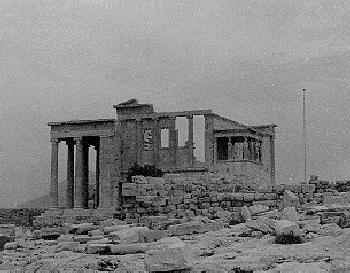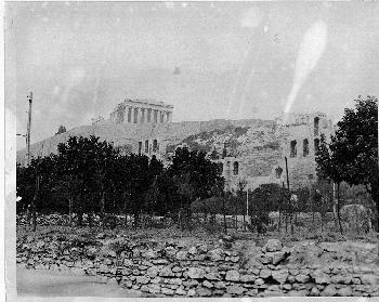 This picture shows the view of the Acropolis, as seen below the hill. Scanned from an